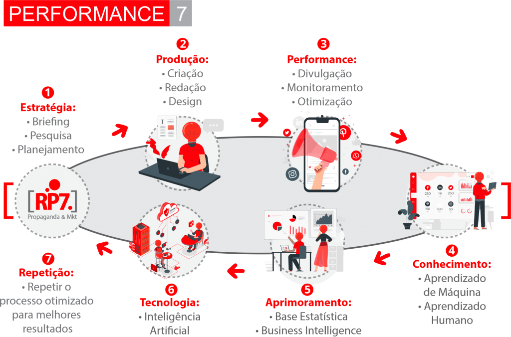 Com a Performance Digital analisamos as suas Redes Sociais e investimos nos canais digitais que dão mais resultados. Entendemos a maneira com que o público se comporta diante de um anúncio. Repetimos o ciclo otimizando para obter os melhores resultados com a ajuda de Inteligência Artificial que análisa milhões de métricas proporcionando melhor poder de decisão para os analistas. Eles foram criados a partir da nossa experiência de mercado e se adaptam durante o aprendizado da campanha.